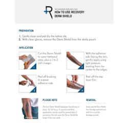 Effortlessly protect your new tattoos with Recovery Derm Shield, a latex-free transparent matte film adhesive bandage. Derm Shield offers maximum breathability and flexibility, providing optimal conditions for flawless healing and skin renewal. It eliminates scabbing and reduces risk of scarring, while preventing exposure to bacteria, dirt, and abrasion. Derm Shield is waterproof, but permeable to allow skin perspiration, and it is durable enough to keep up with your everyday activities with a peace of mind.