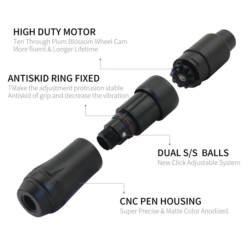 STARRY V2 Pen Machine designed and approved by artists.Each has LED Light Indicator Light,Brass RCA outlet,discountable of motor parts,which get itself fantastic performance for all kinds of tattooing.Product Details